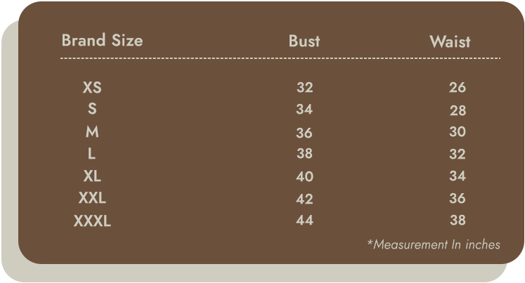 Standard Indian Body Structure: Our size chart is designed based on the standard Indian body structure for optimal fit and comfort.